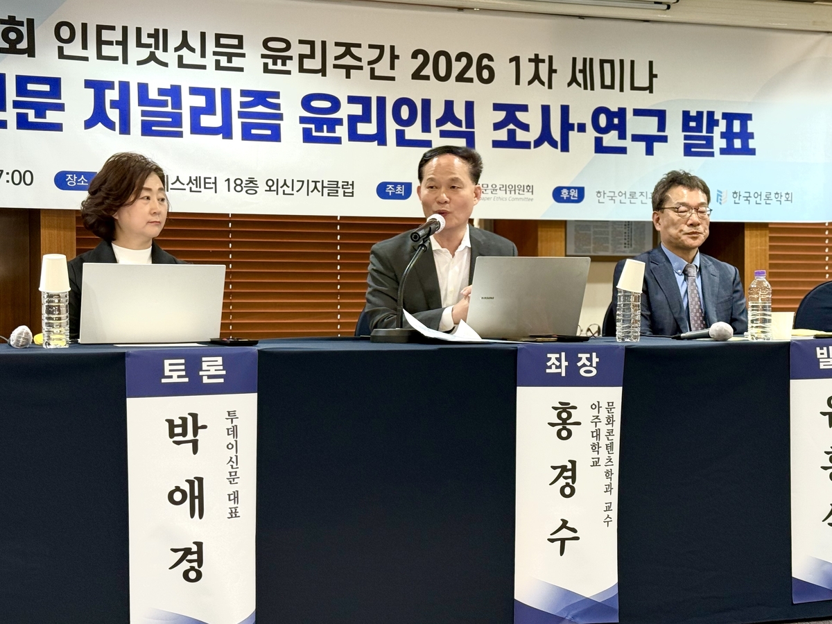 이번 조사는 인터넷신문윤리위원회가 중앙대 미디어커뮤니케이션학부 유홍식 교수 연구팀에 의뢰해 3월 진행한 것으로, 인터넷신문 이용자 500명과 인터넷신문윤리위원회 자율규제활동에 참여하는 서약매체 종사자 104명을 대상으로 실시됐다. 조사 결과는 17일 서울 프레스센터에서 열린 ‘제3회 인터넷신문 윤리주간 2026’ 기념 세미나에서 공개됐다.