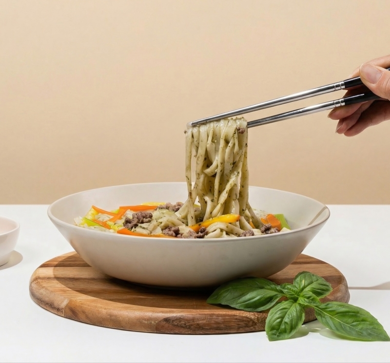 바질리아 면은 강릉 까치칼국수를 통해 ‘바질칼국수’ 형태로 처음 선보일 예정이다. 해당 메뉴는 사골육수와 바질면을 결합한 방식으로 구성된다.