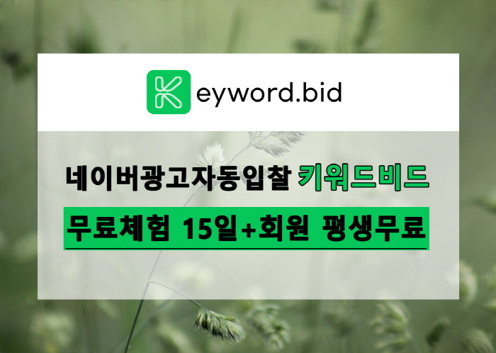 [비건뉴스=김민정 기자] 키워드비드는 다가오는 봄을 맞아 신규 고객을 대상으로 네이버 검색 광고 자동입찰 서비스 15일 무료 제공 및 회원 등록 시 평생 무료 이벤트를 실시한다고 밝혔다.
