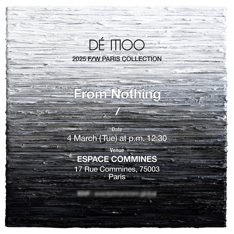 [비건뉴스=이용학 기자] 데무는 2025년 3월 4일 파리의 ESPACE COMMINES(17 Rue Commines, 75003 Paris)에서 '무로부터, from nothing' 이라는 타이틀로 동시대 패션과 변치 않는 데무만의 가치를 재확인하는 컬렉션을 선보인다.