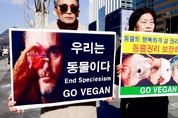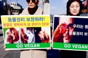 [비건뉴스=최유리 기자] 국제 동물권리의 날을 맞아 국내 동물권·비건 단체들이 연대해 동물권 보장과 비건 전환을 촉구하는 공동 기자회견을 열었다. 한국동물보호연합, 한국비건채식협회, 기후위기비건연대, 한국비건연대, 비건세상을위한시민모임은 9일 서울 광화문 이순신 동상 앞에서 기자회견을 진행하며, 동물도 고통을 회피하고 행복하게 살 권리가 있다는 점을 사회가 인정해야 한다고 강조했다. 현장에서는 ‘동물도 고통을 회피할 권리가 있다’, ‘동물권리를 보장하라’, ‘동물은 음식이 아니다’ 등 동물권 메시지가 적힌 피켓이 등장했고, 참가자들은 동물의 생명을 도구화하는 관행을 비판하는 퍼포먼스를 선보였다. 단체들은 오늘을 전후해 육류산업, 실험동물 사용, 모피 생산, 오락·전시 등 다양한 산업 구조가 동물의 고통을 기반으로 유지되고 있다고 지적하며 개선 필요성을 제기했다. 한국동물보호연합 관계자는 인간 중심의 사고가 동물 착취를 정당화해 온 구조적 문제를 지적하며, 동물을 목적 달성을 위한 수단으로 취급하지 않는 사회적 전환이 필요하다고 밝혔다. 이어 연구진은 동물이 고통을 느끼는 존재라는 사실은 윤리학의 오랜 논의에서도 확인되어 왔다고 설명하며, 동물의 생명권을 침해