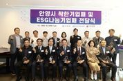 [비건뉴스=최지영 수습기자] 안양시는 16일 오전 11시 30분 관내 음식점에서 지역사회와 이웃을 위해 나눔을 실천한 14개 기업을 대상으로 간담회와 함께 ‘착한기업’ 및 ‘이에스지(ESG)나눔기업’ 감사패 전달식을 가졌다. 나눔 실천에 감사의 마음을 전하고 나눔문화를 활성화하기 위한 이번 행사에는 최대호 안양시장과 14개 기업 대표 및 임원진, 구재관 지역사회보장협의체 민간위원장, 김효진 경기사회복지공동모금회 사무처장 등 20여명이 참석했다. 안양시 착한기업은 2년 이상 지속적으로 연평균 1천만원 이상을 기부한 기업으로, 이날 ▲(주)텔레트론 ▲이알케이솔루션(주) 등 2곳이 착한기업 감사패를 받았다. 이에스지(ESG)나눔기업은 지난해 1천만원 이상을 안양시에 기부한 기업으로, 착한기업으로 선정된 2개 기업과 ▲사회복지법인 백우현진복지재단 ▲(주)코스콤 ▲HL홀딩스 주식회사 ▲㈜쿠스코 ▲㈜대현환경 ▲㈜스크린에이치디코리아 ▲㈜벨루션네트웍스 ▲지에스파워(주) ▲디엔에프솔류션 ▲라온디앤씨(주) ▲평촌교통 ▲인창전자(주) 등 14개 기업이 이에스지(ESG)나눔기업 감사패를 받았다. 최대호 안양시장은 “기부