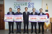 [비건뉴스=최지영 수습기자] 음성군은 지난 20일 군수 집무실에서 관내 5개 기업체가 1000만원 상당의 후원금품을 음성군장애인체육회(회장 조병옥)에 기탁했다고 밝혔다. 이번 기탁에는 △(주)제일참 300만원 △(주)21세기소방 200만원 △(주)창영케미칼 200만원 △성본산업단지(주) 라면 등(200만원 상당) △은찬종합건설(주) 100만원 등 총 5개의 기업이 후원금품을 전달했다. 기탁받은 후원금품은 장애인 체육시설 개선, 훈련비 지원, 장애인 체육 프로그램 지원 등 음성군 장애인 체육 발전을 위해 사용될 예정이다. 기업 대표들은 “지역 장애인 체육 활성화를 위해 기업의 사회적 책임을 다할 수 있어서 뜻깊다”며 “관내 장애인들이 체육활동을 통해 건강한 삶을 이어가고, 꿈을 키울 수 있도록 계속 관심을 가지고 지원하겠다”고 밝혔다. 조병옥 음성군장애인체육회장은 “관내 기업들의 장애인 체육 저변확대를 위한 지속적인 관심과 지원에 감사드린다”며 “기탁된 후원금은 장애인들의 체육 참여 확대와 역량 강화 등 현장 중심 지원으로 소중히 사용하고, 내년 충북장애인도민체육대회의 성공적 개최를 위해 노력하겠다”