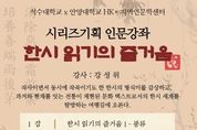 [비건뉴스=최지영 수습기자] 안양시 석수도서관은 안양대학교 HK+사업단 지역인문학센터와 함께 시리즈기획 인문강좌의 일환인‘한시 읽기의 즐거움’ 강좌를 오는 11월 7일부터 12월 5일까지 운영한다고 17일 밝혔다. 이번 강좌를 통해 수강생들은 작사(作詞)와 작곡(作曲)의 특징을 동시에 지닌 한시(漢詩)의 형식미를 감상하고, 과거와 현재를 잇는 전통이 체현된 문화 텍스트로서의 한시 세계를 탐방한다. 석수도서관 관계자는 “석수도서관과 안양대학교 지역인문학센터가 협업하여 진행하는 이번 시리즈기획 인문강좌를 통해 시민들이 한시의 매력적인 세계를 깊이 탐구하고, 한시를 읽는 즐거움을 알 수 있길 바란다”고 밝혔다. 서울대학교 중국어문화연구소 책임연구원이자 한시 칼럼니스트 강성위가 진행하는 이번 강의는 10월 21일 10시부터 안양시도서관 홈페이지에서 접수하면 된다.