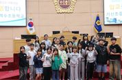 [비건뉴스=최지영 수습기자] 전라남도의회 오미화 의원(진보당·영광2)이 지난 10월 16일, 전라남도의회 본회의장에서 열린 청소년의회교실에 참석한 백수초(영광)와 기산초(함평) 학생들과 함께 민주주의의 가치와 의회의 역할을 배우는 시간을 가졌다. 오미화 의원은 인사말을 통해 “오늘 모인 이곳은 전남 도민의 더 나은 삶을 위해 지혜를 모으는 민주주의의 현장”이라며, “여러분은 오늘 하루 도의원이 되어 조례 검토, 찬반 의견 나누기 등 실제 도의원이 하는 일을 직접 경험하게 될 것”이라고 설명했다. 또한 “대화와 타협을 통해 모두에게 이로운 답을 찾아가는 과정이 바로 민주주의가 작동하는 방식”이라며 “학교에서도 자신의 생각을 논리적이고 당당하게 표현하면서도 친구의 이야기에 진심으로 귀 기울이는 민주시민의 자세를 실천해 달라”고 당부했다. 이어진 질의응답 시간에 의정활동의 목표가 무엇인지 묻는 한 학생의 질문에 “개인의 이익이 아닌 영광군민들이 행복하게 웃을 수 있는 지역을 만드는 것이 목표”라며 “여러분이 성장해 다른 도시로 나가더라도 다시 돌아와 살고 싶은 영광을 만드는 것”이라고 답하기도 했다. 마