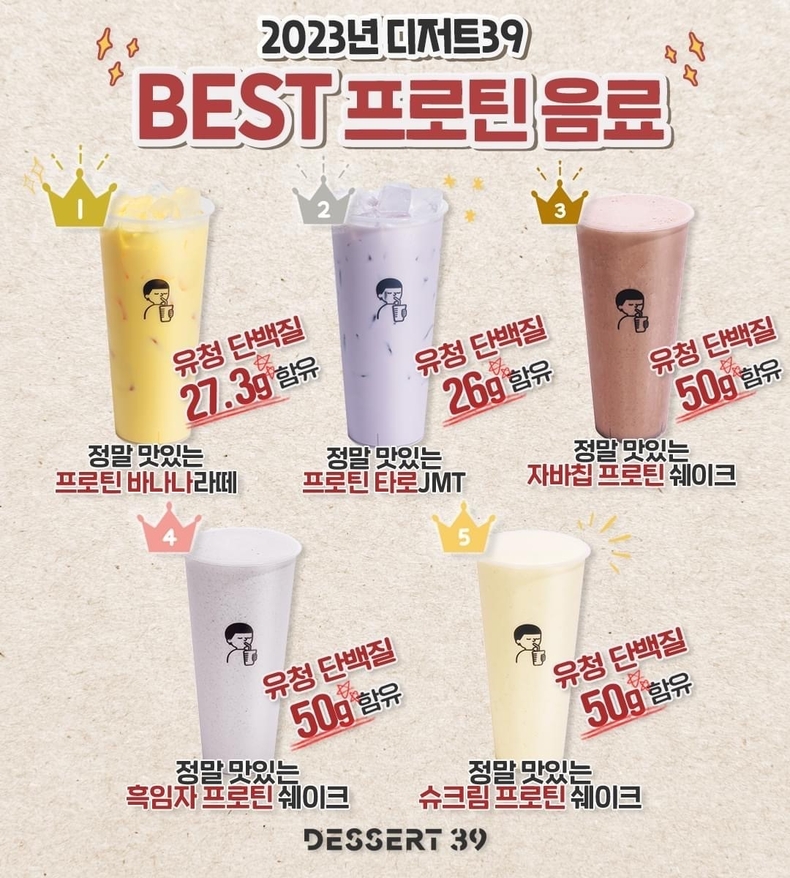 한편 2023년 디저트39과 주력으로 내세우는 프로틴 음료들은 전국의 각 매장에서 편리하게 만나 볼 수 있다.