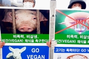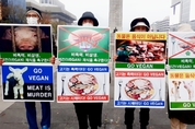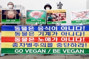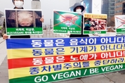 [비건뉴스=최유리 기자] 25일 오후 서울 광화문 이순신동상 앞에서 한국동물보호연합, 한국비건채식협회, 기후위기비건행동, 한국비건연대, 한국채식연합이 공동 기자회견을 열고 비폭력과 비살생의 가치를 바탕으로 한 비건 채식을 촉구했다. 참석자들은 ‘비폭력’, ‘비살생’, ‘사랑’, ‘자비’, ‘평화’, ‘연민’, ‘공존’, ‘상생’ 등의 메시지가 적힌 피켓을 들고 퍼포먼스를 진행하며 동물 학대와 공장식 축산의 구조적 문제를 지적했다. 이들은 동물도 고통을 느끼는 존재라며 종차별적 사고를 멈추고 비거니즘을 통해 평화로운 공존을 실천해야 한다고 호소했다.