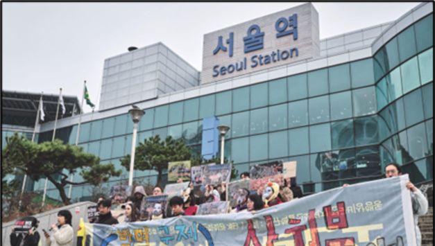 광화문 이순신동상 앞에서 열린 동물권리·동물해방·비건채식 촉구 기자회견 성명 전문을 게재한다. 아래는 성명서 전문이다. 동물권리 보장하라! 동물권리 촉구한다! 동물권리 존중하라! 동물해방 보장하라! 동물해방 촉구한다! 동물해방 존중하라! 동물도 행복하게 살 권리가 있다! 동물도 고통을 회피할 권리가 있다! 동물을 해치지 않는 비건 채식 촉구한다! 동물을 죽이지 않는 비건 채식 촉구한다! 동물을 억압하지 않는 비건 채식 촉구한다! 동물을 착취하지 않는 비건 채식 촉구한다! 동물을 고문하지 않는 비건 채식 촉구한다! 동물을 학대하지 않는 비건 채식 촉구한다! GO VEGAN! BE VEGAN! 호주의 철학자 피터 싱어는 그의 저서 동물해방을 통해 도덕적 고려의 기준을 쾌고감수능력, 즉 쾌락과 고통을 느낄 수 있는 능력으로 보았다. 동물도 인간과 마찬가지로 쾌락을 좋아하고 고통을 싫어하는 존재라는 점에서 동물에게도 도덕적 지위를 인정해야 한다고 밝혔다. 또한 인간과 같은 종이 아니라는 이유로 동물을 차별하는 종차별주의는 인종차별이나 성차별과 다를 바 없다고 비판하며, 그 대표적 사례로 육류산업과 동물실험을 지목하였다. 동물해방이란 동물에 대한 우리의 일상적 사고를
