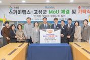 [비건뉴스=최지영 수습기자] 평화 경제 거점 도시 강원 고성군은 2025년 10월 21일, 주식회사 스카이랩스와 함께 만성질환(고혈압, 심혈관 질환 등) 의료취약계층 지원을 위한 업무협약을 체결했다. 이번 협약은 고성군과 스카이랩스가 상호 협력하여 지역민들의 건강 증진과 의료 접근성 향상을 목표로 추진됐다. 이날 협약식에는 고성군수를 비롯한 군 관계자들과 강원특별자치도 이지영 의원, 그리고 스카이랩스의 이병환 대표와 주요 관계자들이 참석했다. 고성군은 대한민국 최북단에 위치해 있어 1인 가구와 고령 인구 비중이 높고, 3차 의료기관과의 접근성이 낮은 현실을 감안하여 이번 협약이 매우 의미 있다고 밝혔다. 함명준 고성군수는 “우리 군민들의 건강관리에 늘 관심이 많으며, 스카이랩스가 개발한 ‘카트 비피’ 반지형 혈압계는 손쉽게 혈압을 측정할 수 있어 만성 심혈관질환자들의 건강관리에 큰 도움을 줄 것”이라고 전했다. 스카이랩스는 이번 협약을 통해 ‘카트 비피’ 혈압계를 고성군에 기탁하며, 이를 활용한 건강관리 지원 방안을 논의했습니다. ‘카트 비피’는 누적된 데이터를 기반으로 건강 상태를 모