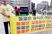 [비건뉴스=서인홍 기자] 10월 4일 ‘세계 동물의 날’을 앞두고 동물권 단체들이 서울 광화문에서 동물 학대와 착취 중단을 촉구하며 비건 채식 실천을 호소했다. 한국동물보호연합, 기후위기비건행동, 한국비건채식협회, 한국비건연대, 한국채식연합 등은 3일 광화문 이순신 동상 앞에서 기자회견을 열고 “동물은 음식이나 물건, 상품이 아닌 고통을 느끼는 존재”라며 “동물도 인간과 마찬가지로 행복하게 살아갈 권리가 있다”고 밝혔다. 이들은 성명서를 통해 “종(種)차별주의는 인종차별이나 성차별과 다르지 않은 폭력적 사고방식”이라며 “사회적 약자인 동물을 학대하고 착취하는 비인도적·비윤리적 행위를 중단해야 한다”고 강조했다. 또 “동물을 억압하거나 착취하지 않는 방법은 비건 채식의 실천”이라며 “인간과 동물이 평화롭게 공존할 수 있는 사회를 위해 비건 채식 확산이 필요하다”고 말했다. 이날 기자회견 참가자들은 피켓 시위와 퍼포먼스를 통해 ‘동물은 음식이 아니다’, ‘동물을 해치지 않는 비건 채식 함께하자’ 등의 구호를 외쳤다. 세계 동물의 날은 1931년 세계동물보호회의에서 제정된 기념일로, 매년 10월 4일 전 세계에서 동물 보호와 권리 존중을 알리는 다양한 행사가 열린