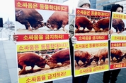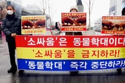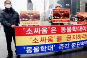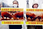 [비건뉴스=최유리 기자] 동물단체들이 지난 16일 오후 서울 광화문 이순신동상 앞에서 기자회견을 열고 ‘소싸움 폐지법’의 국회 통과를 촉구했다. 이날 기자회견은 성명서 낭독과 피켓팅, 퍼포먼스 등의 방식으로 진행됐다. 이날 현장에는 한국동물보호연합, 동물에게자비를, 한국비건채식협회, 기후위기비건행동, 한국비건연대, 한국채식연합이 참여했다. 이들 단체는 “소싸움은 명백한 동물학대 행위”라며 “전통이라는 이름으로 동물에게 상해를 입히는 행위는 더 이상 용인돼서는 안 된다”고 주장했다. 단체들은 ‘소싸움을 중단하라’, ‘소싸움을 금지하라’, ‘소싸움은 동물학대다’ 등의 구호가 적힌 피켓을 들고, 소싸움의 즉각적인 폐지와 관련 법 개정을 요구했다. 특히 동물학대를 예외적으로 허용해 온 현행 법 체계의 모순을 지적하며, 소싸움에 대한 법적 보호 장치가 사라져야 한다고 강조했다. 이날 기자회견에서는 지난 11월 19일 손솔 진보당 의원이 대표 발의한 ‘전통 소싸움경기에 관한 법률 폐지안’이 언급됐다. 해당 법률안에는 전통 소싸움의 폐지와 함께 관련 법령을 개정하는 부칙이 담긴 것으로 알려졌다. 의원실 설명에 따르면, 이 법안은 동물보호법 제10조 제2항 제3호를 비롯해