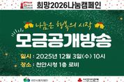 [비건뉴스=최지영 수습기자] (재)천안시복지재단은 내달 3일 희망2026나눔캠페인 공개모금행사 ‘나눔으로 하나되는 따뜻한 천안’을 연다고 28일 밝혔다. 천안시·천안시복지재단·충남사회복지공동모금회가 함께하는 이번 행사는 시청 로비에서 오전 10시부터 12시까지 진행되며, 유튜브를 통해 생중계될 예정이다. 기부는 재단 연합모금계좌로 참여할 수 있으며, 기부자는 세액공제 혜택을 받을 수 있다. 행사를 통해 모금된 성금은 위기가정의 생계비 및 의료비 지원 등 사회적 안전망 강화와 복지기관의 다양한 복지사업에 사용될 예정이다. 재단은 충남사회복지공동모금회와 함께하는 집중모금 기간인 내년 1월 31일까지 시민들의 나눔 참여가 이뤄질 수 있도록 독려할 계획이다. 이운형 천안시복지재단 이사장은 “어느 때보다 경기침체로 힘든 상황이지만 이럴 때 일수록 소외된 이웃을 돌아보고, 나눔 문화 확산에 함께해 주시길 바란다”고 말했다.