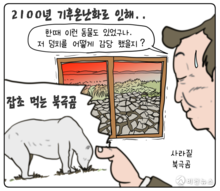 [비건만평] 북극곰, 얼음 녹자 잡초 뜯어 먹어…1년에 137일 굶는다