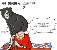 [비건만평] "폼을 위해 사냥" 英 근위병 털모자 하나에 흑곰 한 마리 희생