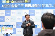 [비건뉴스=최지영 수습기자] 박승원 광명시장이 현장에서 들은 시민 목소리를 내년 시정의 밑거름으로 삼아 더 좋은 광명을 만들어 나가겠다고 밝혔다. 박 시장은 지난 1일 소하동양2차아파트 중앙광장에서 시민 소통 프로그램 ‘아주 소중한 만남의 하루’로 입주민 200여 명과 소통의 시간을 가졌다. ‘아소하’는 바쁜 일상으로 시정 참여가 어려운 시민들을 위해 시장과 공무원이 직접 시민들의 생활공간으로 찾아가 소통하는 생활밀착형 프로그램이다. 올해 6월부터 광명아크포레자이위브, 철산래미안자이, 호반써밋그랜드에비뉴, 트리우스광명을 차례로 방문했고, 이번 소하동양2차아파트를 마지막으로 올해 아소하를 마무리했다. 이날 현장에서는 러브버그 발생 전 조기 방역 실시, 스마트 버스정류장 설치 등 다양한 생활 민원이 나왔다. 박 시장은 러브버그 민원에는 “선제적인 방역을 추진하도록 하겠다”고 답했고, 스마트 버스정류장 설치 민원에는 “우선순위, 인접 상가 동의 여부, 예산 상황 등을 종합적으로 고려해 설치를 검토하겠다”고 말했다. 이 밖에도 입주민들과 다양한 생활불편 사항, 지역 이야기 등을 나