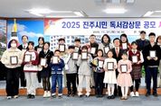 [비건뉴스=최지영 수습기자] 진주시는 지난 27일 시청 3층 문화강좌실에서 ‘2025 진주시민 독서감상문 공모 시상식’을 개최했다. ‘진주시민 독서감상문 공모’는 독서 문화운동 전개로 시민의 독서 의욕을 고취시켜 건전한 독서습관 형성과 독서문화 활성화를 위해 매년 실시되고 있다. 올해 공모는 진주시민을 대상으로 초등부, 중·고등부, 일반부 등으로 나눠 지난 7월 1일부터 9월 26일까지 진행됐다. 올해 선정된 도서는 《구구옥-이별을 도와드립니다》, 《별하약방》, 《스파클》, 《행복의 기원》 등이다. 이번 공모전에는 총 525명의 시민이 참여했으며, 접수된 공모작 가운데 예심과 본심을 거쳐 28명의 수상자가 선정됐다. 최우수상은 ▲초등부 서어진(도동초 5) 학생 ▲중·고등부 정초우(대곡중 1) 학생 ▲일반부 강건중(충무공동) 씨가 수상의 영광을 안았다. 이 외에도 우수상 9명과 장려상 16명, 우수 지도교사상 2명 등 모두 30명이 수상의 영예를 안았다. 수상작은 진주시립도서관 ‘석류알’ 문집에 수록되며, 시립도서관 7개소를 포함한 다양한 기관에 배부돼 활용될 예정이다. 조규일 진주시장은