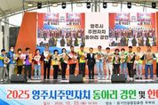 [비건뉴스=최지영 수습기자] 영주시주민자치연합회는 23일, 풍기읍 남원천 일원 풍기인삼축제장 주무대에서 『2025 영주시 주민자치 동아리 경연 및 한마음대회』를 성황리에 개최했다. 올해로 15회째를 맞은 이번 행사는 읍면동 주민자치위원회 위원, 동아리 수강생, 시민 등 1,000여 명이 참여한 가운데 △개회식 △동아리 경연 △한마음대회 △폐회식 순으로 진행됐다. 행사에는 관내 19개 읍면동 주민자치위원회와 자치센터 소속 동아리 회원들이 한자리에 모여, 그동안 갈고닦은 동아리 활동 성과를 발표하고 서로 소통하며 지역의 자치 역량을 나누는 시간을 가졌다. 이어 진행된 한마음대회에서는 제기차기, 신발양궁 등 다양한 친목 프로그램이 펼쳐져 웃음과 열기가 가득했다. 또한, 이번 행사는 ‘2025 경북영주풍기인삼축제’와 ‘영주장날 농특산물대축제’ 기간에 함께 진행돼, 축제의 열기 속에서 지역사회와 어우러지는 자치 화합의 의미를 더했다. 신인식 영주시주민자치연합회장은 “오랜만에 읍면동 주민자치위원들이 한자리에 모여 웃고 소통할 수 있어 매우 뜻깊은 시간이었다”며 앞으로도 주민자치위원들과 마음을 모아