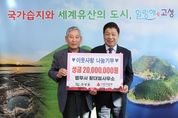 [비건뉴스=최지영 수습기자] 고성군은 법무사 황대열 사무소는 10월 28일 고성군청을 방문하여 어려운 이웃을 위해 성금 2,000만 원을 전달했다고 밝혔다. 이번 성금 기탁은 황대열 법무사가 2020년부터 매년 진행해 온 이웃사랑 나눔기부의 일환으로 2025년까지 기탁을 합쳐 총 8,000만 원의 성금을 지역사회에 전하고 있다. 황대열 법무사는 “고성군민의 따뜻한 사랑으로 도·군의원을 세 차례(기초의원 2회, 광역의원 1회) 역임할 수 있었던 것 같다”라며, “그동안 받은 사랑에 보답하고 싶어 매년 지역사회를 위한 나눔을 실천하고 있다. 도움이 필요한 이웃들에게 희망을 전할 수 있어 보람을 느낀다. 앞으로도 나눔 활동을 지속하겠다”라고 말했다. 이상근 고성군수는 “황대열 법무사님의 꾸준한 이웃사랑 나눔 실천에 진심으로 감사드린다”라며, “전달해 주신 성금은 관내 어려운 이웃들에게 소중하게 전달될 것이며, 군에서도 더 많은 이웃이 희망을 가질 수 있도록 최선을 다하겠다”라고 전했다. 한편, 이날 기탁된 성금은 사회복지공동모금회를 통해 고성군 내 저소득층 등 실질적으로 도움이 필요한 이웃들
