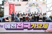 [비건뉴스=최지영 수습기자] 제10회 예천전국가요제가 2일 오후 2시,‘2025 예천활축제&농산물축제’ 특설무대에서 열렸다. (사)한국연예예술인총연합회예천지회(지회장 채희삼)의 주관으로 진행되는 이번 대회에는 전국에서 엄선된 본선 12팀이 출연하여 열띤 경연을 펼쳤다. 예천전국가요제는 지역 문화예술 발전과 대중음악 활성화를 위해 꾸준히 이어져 온 행사로 예천색소폰동호회의 식전공연을 시작으로 본선 진출자 12팀과 강민주, 통일메아리악단, 인댄스 무용단 등의 초청공연이 펼쳐졌다. 시상식에서는 400만 원의 상금이 걸린 대상은 문정옥 씨(대구) 금상은 유소라 씨(충주)가 수상했으며, 은상은 장혜진 씨(문경), 동상은 강나은 씨(서울), 가창상은 김정희 씨(영주), 인기상은 최우혁 씨(대구)에게 각각 수여됐다. 수상자들에게는 수상의 영예와 함께 많은 격려가 전해졌다. 김학동 군수는 “지역문화 활성화와 주민 화합의 장을 마련해 가고 전국가요제가 더욱 발전하여 예천을 대표하는 문화예술축제로 자리매김하기를 바란다”고 전했다.