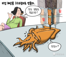 [비건만평] '식물성 단백질 한 층씩 쌓아'…비건 해산물, 3D프린터로 구현