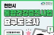 [비건뉴스=최지영 수습기자] 천안시는 오는 28일까지 내년 지역사회 통합건강증진사업 추진을 위한 주민요구도 조사를 실시한다고 6일 밝혔다. 시는 내년 지역사회 통합건강증진사업 계획 수립 시 사업의 우선순위와 핵심성과 지표 선정 등 시민의 의견을 반영하기 위해 주민요구도 조사를 실시한다. 조사는 인적사항을 비롯해 건강증진사업에 대한 인식도·참여도·만족도·사업의 우선순위 등 총 12문항으로 구성돼 있으며, 정보무늬(QR코드)를 통해 비대면으로 참여하면 된다. 기타 문의사항은 천안시 동남구보건소 건강생활팀으로 문의하면 된다. 이현기 서북구보건소장은 “천안시민의 건강 수준 향상을 위한 지역사회 통합건강증진사업에 시민들의 요구사항이 최대한 반영될 수 있도록 시민들의 적극적인 참여를 바란다”고 말했다.