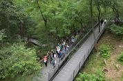 [비건뉴스=최지영 수습기자] 서울 중구의 정책만족도 1위인 ‘남산자락숲길’이 주민들의 발걸음으로 활기를 띠고 있다. 사계절 누구나 걷기 좋은 무장애 친화 숲길인 남산자락숲길은 중구를 대표하는 힐링 명소로 자리 잡았다. 올해 1월부터 8월까지 남산자락숲길을 찾은 이용객은 총 46만4천여 명. 월평균 약 5만8천 명에 달한다. 지난해 6월에 3만9천여 명이 이용했던 것과 비교해, 올해 6월에는 8만8천여 명이 다녀가며 이용객이 두 배 이상(약2.25배) 증가했다. 10월에도 다양한 주민들이 남산자락숲길을 찾아 가을을 만끽하며 힐링하고 있다. 지난 17일, 숲 해설가로 활동하는 명동 살트르 성 바오로 수녀회의 수녀와 농아인 주민 등 20여 명이 함께 남산자락숲길을 산책했다. 참가자들은 서울방송고등학교부터 한남테니스장까지 이어지는 코스에서 가을 숲길에서 확대경‘루페’를 활용해 숲의 식물들을 자세히 살펴보며 자연과 교감했다. 농아인 주민들은 “남산자락숲길에서 가을을 느끼고, 위로와 힘을 얻었다”,“수녀님의 해설과 구청의 지원 덕분에 알차고 즐거운 시간을 보낼 수 있어서 감사하다”등 소감을 밝혔다. 앞서 지난