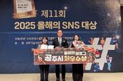 [비건뉴스=최지영 수습기자] 공주시가 ‘제11회 2025 올해의 SNS 대상’ 시상식에서 블로그 부문 최우수상을 받았다고 밝혔다. 시에 따르면, 사단법인 한국소셜콘텐츠진흥협회가 주최·주관하고 과학기술정보통신부가 후원하는 ‘올해의 SNS’는 매년 민간과 공공 분야의 사회관계망(SNS) 채널을 대상으로 우수한 성과를 평가해 매체별로 시상한다. 지난 26일 한국프레스센터에서 열린 시상식에서 공주시는 블로그 부문 최우수상을 받는 영예를 안았다. 이번 수상으로 공주시는 블로그 부문에서 4년 연속 수상 기록을 이어가게 됐다. 공주시의 공식 블로그 ‘흥미진진 공주’는 30명의 SNS 서포터즈와 함께 공주의 역사, 문화, 관광지, 잔치 등을 깊이 있고 생동감 있게 다룬 글과 영상물을 꾸준히 올리며 시민과의 소통 역량을 높인 점에서 높은 평가를 받았다. 최원철 시장은 “공주의 고유한 이야기와 가치를 블로그를 통해 진정성 있게 전달해 온 노력이 좋은 결과로 이어졌다”며 “앞으로도 시민 참여를 넓히고 다양한 내용으로 공주의 매력을 풍성하게 알릴 것”이라고 말했다. 한편 시는 현재 페이스북과 블