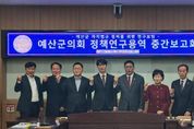 [비건뉴스=최지영 수습기자] 예산군의회는 25일 의회 문화강좌실에서 '예산군 자치법규 정비를 위한 연구모임' 정책연구용역 중간보고회를 개최했다. 이날 보고회에는 연구모임 대표의원인 김영진 의원을 비롯하여 임종용·이길원·김태금 의원과 군청 관계자·외부 전문가 및 연구수행기관 등이 참석했다. 이어 예산군 자치법규 정비를 위한 연구용역 수행기관은 그동안 진행해 온 주요 내용 및 진행 상황을 보고하며 의견수렴의 시간을 가졌다. 김영진 대표의원은 “남은 기간 동안 더욱 심도 있는 검토와 논의를 통해 연구용역의 완성도를 높이고, 예산군 자치입법 역량에 실질적으로 기여할 수 있도록 하겠다”고 밝혔다. 예산군의회는 앞으로도 정책연구와 입법역량 강화를 위해 지속적인 연구 활동을 이어갈 계획이다.