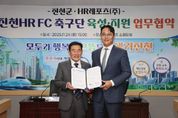 [비건뉴스=최지영 수습기자] 충북 진천군은 군청 소회의실에서 HR레포츠 주식회사(대표 신호룡)와 ‘진천 HR FC 축구단 육성 및 지원을 위한 업무협약’을 체결했다고 24일 밝혔다. 이번 협약은 2026년 대한축구협회 K4 리그 참가를 앞두고, 진천 HR FC의 안정적인 운영 기반을 마련하고, 지역 스포츠 발전을 위한 협력 체계를 구축하기 위해 추진됐다. 협약식에는 송기섭 진천군수와 HR레포츠(주) 신호룡 대표, 김화영 진천군 체육회장, 김중기 진천군 축구협회장 등 관계자들이 참석했다. 협약의 주요 내용은 △축구단 운영과 발전 지원 △유소년 축구 육성과 저변 확대 △지역사회 공헌 활동 △스포츠마케팅을 통한 지역 홍보 강화 등이다. 군은 이번 협약을 통해 지역 스포츠 브랜드 가치 제고, 군민 스포츠 관람 문화 정착, 유소년·생활 체육 연계 강화 등 다양한 효과를 기대하고 있다. 앞으로 군은 행정적·재정적 지원과 경기장 관련 시설 활용 지원 등에 협력하고, HR 레포츠는 선수단 운영, 스포츠마케팅, 유소년 프로그램 운영 등을 총괄하며 지역 축구 문화 확산에 힘쓸 예정이다.