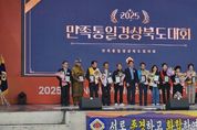 [비건뉴스=최지영 수습기자] 영주시는 지난 22일 풍기읍 남원천 일원 풍기인삼축제장 주무대에서 민족통일협의회 창설 44주년을 기념하는 ‘2025 민족통일경상북도대회’와 ‘제56회 한민족통일문화제전 시상식’을 성황리에 개최했다고 밝혔다. 경상북도와 영주시, 민족통일경상북도협의회, 민족통일영주시협의회가 공동으로 주최·주관한 이번 대회에는 도내 19개 시‧군 협의회 회원과 영주시민 등 600여 명이 참석했다. 참석자들은 민족통일운동 44년의 발자취를 돌아보며 한반도 평화와 번영을 향한 도민의 의지를 다졌다. 이번 행사는 ‘2025 경북영주풍기인삼축제’와 ‘영주장날 농특산물대축제’ 기간에 함께 열려, 축제를 찾은 시민과 관광객이 함께 참여하며 통일 공감대 확산과 지역 화합의 의미를 더했다. 본행사에 앞서 식전공연으로 평양예술단 특별공연이 펼쳐져 눈길을 끌었으며, 개회식과 국민의례, 회원신조 및 결의문 낭독, 대회사·격려사·환영사·축사 순으로 행사가 진행됐다. 이어 통일문화 확산과 지역사회 발전에 기여한 유공자 56명에게 표창이 수여됐다. 수상자는 △장관 표창 3명 △도지사 표창 12명 △민통장 증 6명 △