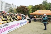 [비건뉴스=최지영 수습기자] 서대문구는 최근 이화여자대학교 산학협력관 일대에서 진행한 ‘2025 재난대응 안전한국훈련’을 성공리에 마무리했다고 3일 밝혔다. 이번 훈련은 ▲지진에 따른 건축물 붕괴와 화재 ▲전기·가스시설 파손 ▲도로 싱크홀 및 인근 산불 확산 등 복합 재난 상황을 가정해 이루어졌다. 단일 재난이 다른 재난으로 연쇄 확산하는 ‘복합 재난’의 특성을 반영해 현장 지휘·통제·복구 기능이 동시에 가동되는 통합형 훈련으로 추진했다. 서대문구청, 서대문소방서, 서대문경찰서, 이화여자대학교 등에서 300여 명이 참여한 가운데 각 기관은 재난 발생 시 상황판단 회의를 통한 신속한 의사결정과 유관기관 협조 체계를 점검했다. 이를 위해 통합지원본부 토론훈련과 실전형 현장훈련을 연계했다. 특히 이번 훈련에서는 소방 헬기와 로봇견(로봇개)을 활용한 입체적 화재 진압과 인명 수색 장면이 시연돼 실전 같은 긴장감을 더했다. 또한 서대문구청 ▲도로과의 ‘GPR(지반탐사 레이더) 차량을 통한 이화여대 일대 지반 공동 탐사’ ▲푸른도시과의 ‘안산(鞍山) 자락 잔불 진화’ ▲재난안전과의 ‘드론을 이용한