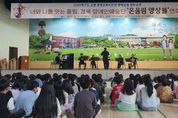 [비건뉴스=최지영 수습기자] 고령교육지원청 통합교육지원단은 10월 22일, 고령초등학교에서 장애공감 문화공연의 일환으로 경북장애인예술단‘온울림 앙상블’의 공연을 실시했다. 이번 행사는 장애인예술단의 아름다운 연주를 통해 학생들에게 장애와 비장애의 경계를 넘어 우리 모두를 이어주는 소통과 공감의 경험을 제공하고자 마련됐다. 이날 공연은 포항 명도학교 박은재 교사의 지휘로 학생과 교직원이 모두 즐길 수 있는‘반딧불이’,‘신호등’,‘나는 문어’등과 같은 친숙한 곡들이 연주됐다. 특히 학생들과 교직원들은‘반딧불이’의 선율에 한마음, 한목소리로 노래를 부르며 연주회장을 콘서트장으로 바꾸어 놓았다. 공연을 관람한 고령초의 한 학생은 “선생님께서 장애인예술단이라 소개하셨지만, 연주가 시작되니 그런 것은 하나도 신경 쓰이지 않았다”며 “다른 공연과 다르게 선생님, 친구들과 큰 소리로 따라 부를 수 있어 정말 좋았다”고 소감을 말했다. 정태호 교육장은 “이번 장애공감 문화공연이 너와 나를 이어 우리가 되는 따뜻함을 경험하는 시간이었으면 한다”며“앞으로도 서로 다름을 인정하며 함께 어우러질 수 있는 다양