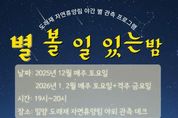 [비건뉴스=최지영 수습기자] 경남 밀양시는 오는 12월 6일부터 도래재 자연휴양림에서 동절기 야간 별 관측 프로그램 ‘별 볼 일 있는 밤’을 운영한다. 이번 프로그램은 지난해와 마찬가지로 밀양아리랑우주천문대의 ‘찾아가는 천문대’와 연계해 내년 2월까지 진행된다. ‘별 볼 일 있는 밤’은 겨울철 청명한 야간 환경을 활용한 천체 관측 프로그램이다. 2023년 1월 245명을 시작으로 2024년 12월 117명, 2025년 1~2월 200명 등 꾸준한 참여를 기록하며 많은 관심을 받고 있다. 프로그램은 도래재 자연휴양림 전망데크 또는 목공예센터 2층에서 열린다. 올해 12월에는 매주 토요일 오후 7시, 7시 30분, 8시 등 총 3회 차로 운영된다. 각 회차는 약 20분간 진행되며, 회당 정원은 20명이다. 2026년 1월과 2월에는 매주 토요일 운영 외에도 격주 금요일 프로그램을 추가 운영해 참여 기회를 확대할 계획이다. 휴양림 숙박객과 밀양시민은 무료이며, 그 외는 체험료 2,000원을 현장에서 납부하면 참여할 수 있다. 참여 신청은 프로