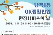 [비건뉴스=최지영 수습기자] 울산 동구는 오는 11월 5일 오후 2시부터 4시까지 옥류공원에서 ‘남목1동 OK생활민원 현장서비스의 날’ 행사를 개최한다. 이번 행사는 올해 여덟 번째로 열리는 OK생활민원 현장서비스의 날 행사로 주민들의 일상생활 속 불편 해소와 삶의 질 향상을 위한 다양한 분야로 구성했으며, 이번 행사 운영을 위해 자원봉사자, 민간 기술자, 관계 공무원 등 90여 명이 참여한다. 서비스 분야는 총 8개로 주민 편익(칼갈이, 분갈이, 자전거 수리, 안경 및 귀금속 세척), 건강관리(심혈관질환, 비만 예방, 치매 예방), 구정 홍보(탄소중립 생활 실천 홍보), 생활안전(심폐소생술 체험, 소화기 사용 체험), 생활 상담(구민 고충 상담), 동 특화사업(이웃사랑 실천! 복지사각지대 없는 행복 남목1동) 등이 있다. 유료 체험 부스로는 반려식물 키우기 체험이 마련되는데, 1인당 1개만 가능하며 빈 화분을 지참해야 하고 체험비는 현금으로 받는다. 2025년 OK생활민원 현장서비스의 날 전체 일정 및 남목1동 행사 정보는 울산 동구청 홈페이지[알림사항]에서 확인 할 수 있다.