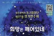 [비건뉴스=최지영 수습기자] 광주 동구는 동구합창단이 오는 28일 오후 7시 30분 국립아시아문화전당 예술극장 극장2에서 ‘제27회 정기연주회 희망은 깨어있네(Hope is Awake)’를 개최한다고 밝혔다. 이번 정기연주회는 ‘희망은 깨어있네’를 주제로 지역민에게 희망과 위로, 새로운 출발을 향한 용기를 전하는 무대로 꾸며진다. 정기 무대를 통해 올 한 해의 성과를 공유하는 것은 물론, 오페라 성악과 재즈‧국악 협연 등 다채로운 특별공연이 마련돼 관객들에게 더욱 풍성한 음악적 감동을 선사할 예정이다. 공연은 ▲어둠 속 작은 빛 ▲전통과 현대의 어울림 ▲삶의 기쁨 ▲귓가에 맴도는 오페라 아리아 ▲모두의 행복을 위한 노래 등 다섯 개의 파트로 구성되며, 주요 레퍼토리는 정중식 ‘나는 반딧불’, 서도민요 ‘큰애기 반봇짐’, 필리핀 민요 ‘Ay Ay Ay O Pag-ibig(오! 내 사랑)’, 푸치니 ‘피가로의 결혼’ 중 ‘나비는 더 이상 못 날으리’, 윤학준 ‘희망은 깨어있네’, 우효원 ‘아리랑’ 등으로 풍성하게 채워진다. 임택 동구청장은 “이번 공연이 구민들의 문화적 감수성을 높이는 계기가 되고, 지역 문화예술