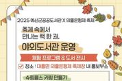 [비건뉴스=최지영 수습기자] 예산군 공공도서관은 11월 8일부터 9일까지 이틀간 열리는 ‘2025 의좋은형제축제’ 현장에서 ‘야외 도서관’을 운영한다고 밝혔다. 이번 행사는 지역 주민과 관광객이 함께 즐길 수 있는 체험형 독서문화 프로그램으로 구성됐으며, 어린이부터 가족 단위 방문객까지 누구나 자유롭게 참여할 수 있다. 야외 도서관은 축제장 내 홍보부스에서 운영되며, 방문객들은 △슈링클스 키링 만들기 △걱정인형 만들기 등 다양한 창의 체험 활동을 즐길 수 있고 도서 전시 및 열람 공간을 마련해 관람객이 자유롭게 책을 읽으며 휴식할 수 있는 열린 독서문화 공간으로 운영될 예정이다. 이번 프로그램은 주민의 참여와 소통, 배움이 어우러지는 독서·체험의 장을 조성하기 위한 취지로 마련됐다. 야외 도서관은 축제 기간인 11월 8일과 9일 오전 10시부터 오후 4시까지 운영되며, 참가 신청은 현장에서 선착순으로 접수한다. 공공도서관 관계자는 “이번 야외 도서관 운영을 통해 주민들이 도서관을 보다 친숙하게 느끼고, 책과 함께하는 문화를 자연스럽게 경험하길 바란다”고 말했다.