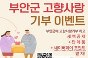 [비건뉴스=최지영 수습기자] 부안군은 연말을 맞아 24일부터 오는 12월 7일까지 군에 10만원 이상 고향사랑기부를 한 참여자에게 네이버페이 포인트 1만원권을 제공하는 ‘부안군에 고향사랑기부하고 네이버페이 포인트 받자!’ 이벤트를 진행한다고 밝혔다. 이번 이벤트는 고향사랑기부제 참여 활성화를 위해 마련된 것으로 기간 내 군에 10만원 이상 기부한 뒤 답례품을 선택해 포인트를 모두 소진하는 경우 자동으로 응모된다. 총 200명에게 선착순으로 네이버페이 포인트 1만원권 기프티콘이 지급되며 소진 시 조기 종료될 수 있다. 참여 방법은 온라인은 고향사랑e음 홈페이지, 오프라인은 전국 NH농협은행 지점에서 군에 고향사랑기부 후 답례품을 선택하면 되며 당첨자는 오는 12월 12일 개별 문자로 안내될 예정이다. 군 관계자는 “고향사랑기부제는 주소지 외 지역에 기부하면 세액공제 혜택과 함께 답례품을 받을 수 있는 제도”라며 “이번 이벤트가 부안을 응원하고 싶은 분들께 작은 혜택이 되길 바란다”고 말했다. 한편 고향사랑기부제는 10만원까지 전액 세액공제, 그 이상은 16.5% 세액공제, 여기에 기부금의