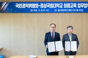 [비건뉴스=최지영 수습기자] 경상국립대학교와 국민권익위원회는 10월 29일 오후 2시 가좌캠퍼스 도서관 6층 회의실에서 청렴한 미래인재 양성 및 청렴문화 확산을 위해 업무협약을 체결했다. 업무협약 체결식에는 권진회 총장을 비롯해 대학 보직자와 유철환 위원장과 부패방지국장, 대변인, 고충민원심의관, 청렴연수원장 등 10여 명이 참석했다. 행사는 참석자 소개, 각 기관 홍보영상 시청, 인사 말씀, 업무협약 내용 소개, 업무협약 서명 및 교환, 기념 촬영의 순으로 진행됐다. 이번 협약은 대학 내 청렴 가치관 확립과 관련 교육의 체계적 실현을 목표로 하며, 지속 가능한 청렴 교육을 통해 대학생들을 청렴 리더로 양성하는 데 중점을 둔다. 주요 협력 사항으로는 ▲대학생 청렴 가치관 확립을 위한 교육 ▲교직원의 청렴 역량 향상 교육 ▲대학생과 교직원의 고충 상담 및 해소를 위한 협력이 포함된다. 경상국립대학교 권진회 총장은 “청렴은 대학의 사회적 신뢰를 지탱하는 핵심 가치”라며 “우리 대학 학생들이 배움 속에서 청렴을 체득하고, 이를 사회로 확산시키는 청렴인재로 성장하도록 적극 노력하겠다.”라고 말