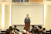 [비건뉴스=최지영 수습기자] 화성특례시가 2일 푸르미르호텔 그랜드볼룸에서 ‘2025년 화성시 통·리장 역량 강화 교육’을 개최했다. 이번 교육은 신규 통·리장을 비롯해 읍·면·동 통리장단 협의회 회장 및 총무 등 170여 명을 대상으로 소통 리더십과 통·리장의 직무 및 역할 등을 주제로 진행됐다. 샤인앤컴퍼니 김은혜 전문 강사가 지역 리더로서의 소통기술 교육을 진행했으며, 전은주 강사가 신규 통·리장을 위한 직무와 역할 및 화성시의 통리장 지원 사업인 ‘스마트마을방송’ 활용 교육을 진행했다. 정명근 화성특례시장은 “내년 구청 체제 출범을 앞두고 지역 행정의 핵심 역할을 담당하는 통·리장님의 역할이 그 어느 때보다 중요하다”며 “이번 교육이 통·리장님의 활동에 실질적인 도움이 돼 특례시와 구청 체제에 걸맞은 지역 발전을 함께 이끌어가는 데 지혜와 힘을 모아 주시길 바란다”고 말했다. 한편, 화성시에는 현재 29개 읍·면·동 전역에서 964명의 통·리장이 활동하고 있으며, 이들은 복지 사각지대 발굴, 시책 전달 및 홍보, 주민등록 사실조사, 민방위대 운영, 주민 공동체 형성 등 다양한 임무를 수행하고