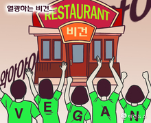 [이창엽 만평] 비건 레스토랑에 열광하는 비건
