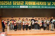 [비건뉴스=최지영 수습기자] 담양군은 21일 담빛농업관에서 자원봉사자 200여 명이 참석한 가운데 ‘2025 담양군자원봉사자 기념식’을 열고 올해 지역에서 활동한 자원봉사자들의 노고를 격려했다. 이번 기념식은 지역사회 곳곳에서 활동한 자원봉사자들의 헌신을 기리고 자원봉사 문화 확산을 도모하기 위해 마련됐다. 행사는 유공자 표창패 수여, 성과보고, 역량강화 교육, 화합 한마당 순으로 진행됐으며, 다양한 프로그램을 통해 참여자들의 호응을 얻었다. 이날 재난 복구, 취약계층 돌봄, 지역 환경 개선 등 여러 분야에서 활동한 자원봉사자에 대한 표창이 이어졌고, 역량강화 교육과 화합 프로그램은 참석자 간 소통과 연대의 시간이 됐다. 정철원 담양군수는 “자원봉사자들의 따뜻한 실천이 담양군을 더 나은 지역으로 만드는 힘이 되고 있다”며 “앞으로도 자원봉사 활성화를 위한 지원을 지속하겠다”고 말했다.