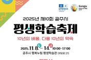 [비건뉴스=최지영 수습기자] 공주시는 오는 8일부터 14일까지 행복누림 일원에서 ‘10년의 배움, 다음 10년의 약속’을 주제로 제10회 공주시 평생학습축제를 개최한다. 올해 축제는 공주시가 평생학습도시로 지정된 지 10주년을 맞아 마련된 행사로, 시민이 배우고 나누는 학습공동체의 가치를 확산하고 탄소중립 실천과 지역 중심의 학습 확장을 실현하는 지속가능한 평생학습축제로 진행된다. 개회식은 11월 8일 오후 2시 행복누림 5층 대강당에서 열리며, 식전공연 ‘박동진 판소리 꿈나무’를 시작으로 평생학습 유공자 표창과 10주년 기념 퍼포먼스가 이어진다. 이후 공주시 평생학습동아리의 공연과 체험 프로그램이 진행돼 축제의 열기를 더할 예정이다. 행복누림 1층 마주침공간에서는 탄소중립 실천을 위한 친환경 체험 프로그램이 운영되며, 2층부터 5층까지는 평생학습 관련 기관과 동아리들이 운영하는 체험 및 전시 부스가 마련된다. 또한 5층 대강당에서는 다채로운 공연이 펼쳐진다. 특히 올해는 평생학습도시 지정 10주년을 기념해 각 읍면 평생학습센터가 주체가 되어 11일부터 13일까지 3일간 ‘