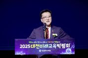 [비건뉴스=최지영 수습기자] 대전시의회 조원휘 의장은 25일 대전컨벤션센터(DCC)에서 개최된 2025 대전미래교육박람회 개막식에 참석해 미래를 선도해 나가는 교육혁신 선도 도시, 대전을 위한 정책적 관심과 지원을 약속했다. 이날 행사는 지역을 대표하는 단체·기관장, 학교장, 학교운영위원장 등 650여 명이 참석한 가운데 대전미래교육 영상 시청을 시작으로 주요내빈 축사, 커팅식 순으로 진행됐고, 개회식을 마친 뒤에는 ‘AI 시대의 삶과 앎’이란 주제의 기조 강연과 박람회 투어가 이어졌다. 조원휘 의장은 “이번 박람회로 AI와 디지털 대전환이라는 거대한 물결 앞에서 우리 아이들을 미래사회 주역으로 키우겠다는 대전교육의 확고한 의지를 확인할 수 있었고, 여러 미래형 수업 모델 등을 통해 대전이 교육혁신 선도 도시로 자리매김했음을 증명했다”면서, “대전시의회는 앞으로도 AI·디지털 기반 수업 확충 등 현장에서 실질적 성과로 이어지도록 적극 지원하면서 미래 교육을 강하게 뒷받침하겠다”고 말했다.