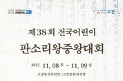 [비건뉴스=최지영 수습기자] 전북 고창군이 올해의 어린이 판소리 왕중왕을 가리는 ‘제38회 전국 어린이판소리왕중왕대회’ 참가자를 오는 11월7일까지 모집한다. 차세대 어린이 판소리 명창을 발굴 육성하고 판소리 여섯 바탕 사설을 집대성하신 동리 신재효 선생의 문화예술사적 업적을 기념하며 유업을 계승하기 위해 고창군과 KBS전주방송총국이 공동주최하고 (사)동리문화사업회가 주관한다. 대회는 고창 동리국악당에서 11월8일 예선을 거쳐 이튿날(9일) 축하 공연과 병행하여 예선을 통과한 7명의 어린이가 본선 경연을 한다. 왕중왕전은 KBS전주방송총국이 전국에 방영하여 어린 꿈나무들의 판소리 기량을 널리 알리며, 미래의 판소리 인재를 발굴하고, 우리 전통문화의 가치를 확산하는 가치의 의미를 둔다. 대회 참가는 2024~2025년 국악대회에서 입상한 전국의 어린이로 고창군 홈페이지 공고문을 참고하여 신청하고, 관련 및 자세한 사항은 사)동리문화사업회로 문의하면 된다.