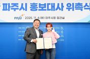 [비건뉴스=최지영 수습기자] 파주시는 11월 4일, 가수 김다현을 파주시 홍보대사로 추가 위촉했다고 밝혔다. 이번 위촉식은 김경일 파주시장과 김다현 씨의 가족들이 참석한 가운데 진행됐다. 김다현 씨는 앞으로 2년간 파주시의 주요 정책과 문화·관광을 홍보하고, 지역 행사 등에 적극 참여할 예정이다. 현재 한국과 일본을 오가며 활약 중인 김다현 씨는 ‘청학동 훈장’으로 알려진 김봉곤 훈장의 막내딸로, 2019년 곡 ‘꽃처녀’로 데뷔한 트로트 가수이자 국악인이다. 이후 엠비엔(MBN) 경연 프로그램 ‘보이스트롯’준우승, 티브이(TV)조선 ‘내일은 미스트롯2’3위, 엠비엔(MBN) ‘현역가왕’3위 등을 차지하며, 다양한 무대를 통해 국악적 깊이와 대중성을 함께 갖춘 가창력으로 주목받고 있다. 김경일 파주시장은 “트로트 요정 김다현 씨가 파주시의 젊고 활기찬 이미지를 알리는 데 큰 힘이 될 것으로 기대한다”라고 말했다. 앞서 파주시는 지난 17일 밴드 ‘두 번째 달’, 유튜브 창작자 ‘젼언니’, 가수 ‘김설’을 홍보대사로 위촉한 바 있다. 이번 김다현 씨의 합류로 파주시 홍보대사단은 한층 풍성해져, 음악·문