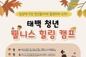 [비건뉴스=최지영 수습기자] 태백시는 태백 청년창창센터에서 지역 청년들의 심리적 회복과 건강한 삶의 균형을 지원하기 위해 ‘청년 웰니스 힐링 캠프’ 참가자를 모집한다고 밝혔다. 이번 캠프는 11월 22일 오후 2시부터 5시 20분까지 태백 청년창창센터(태백시 계산1길 15)에서 진행되며, 태백시에 주소를 두거나 생활근거지가 있는 18세 이상 49세 이하 청년 20명 내외를 대상으로 한다. 일상에 지친 청년들을 위하여 △ 사상체질 테스트를 통한 웰니스 한방 체험 △ 색채 심리 검사에 따른 맞춤형 웰니스 컨설팅 △ 개인 맞춤형 아로마 오일 처방 등 다양한 프로그램이 준비되어 있으며, 청년들은 본인의 취향에 맞춰 선택적으로 프로그램 체험이 가능하다. 참가 신청은 네이버폼 또는 포스터의 QR코드를 통한 온라인으로 접수가 가능하며 참가자는 선착순 20명 내외로 선정될 예정으로, 자세한 사항은 태백시청 홈페이지 소통참여 ' 시민공지신청 ' 일반공지신청 탭에서 확인할 수 있다. 경제진흥원 관계자는 “청년의 역량강화와 사회참여 촉진 등 다양한 청년 활동 지원을 위해 마련된 청년센터가 올해 10월 강원특별자치도 경