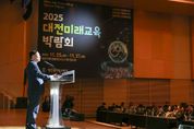 [비건뉴스=최지영 수습기자] 대전시교육청은 11월 25일 대전컨벤션센터 제1전시장에서 학생, 학부모, 교직원, 교육관계자 등 교육가족을 대상으로 '2025 대전미래교육박람회' 개막식 및 1일차 행사를 진행했다고 밝혔다. 대전시교육청이 주최・주관하는 이번 박람회는‘변화하는 수업, 혁신하는 교육으로 지속가능한 미래를 열다’를 슬로건으로 수업성장, 교육공감, 정책소통의 테마별 프로그램과 힐링카페, AI 디지털 플레이존 등 교육가족 모두가 즐겁게 참여할 수 있는 다채로운 프로그램으로 운영한다. 박람회 개막식은 미래교육 영상 상영을 시작으로 설동호 교육감의 인사말씀, 대전광역시의회 조원휘 의장과 이금선 교육위원장의 축하말씀과 메시지로 대전교육가족 모두가 즐기고 누리는 교육박람회 개최를 축하하는 자리가 됐다. 개막식 기조강연은 생명다양성재단 최재천 대표의‘AI시대의 삶과 앎’을 주제로 진행됐다. 최 대표는 AI로 대표되는 미래사회는 지식 전달을 넘어 지혜의 공유가 필요한 시대로 자신만의 통섭적 사고를 키워 미래를 준비하는 자세의 필요성을 강조했다. ‘수업성장’테마로 진행되는 4개의 수업관에서는 유치원, 초등,