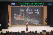 [비건뉴스=최지영 수습기자] 부산 사상구는 11월 25일 오후 2시 사상구청 한마당홀에서 관내 주민과 공무원을 대상으로 ‘기후위기와 적응 그리고 우리’를 주제로 한 ‘2025년 사상구 기후·환경 아카데미’를 개최했다고 밝혔다. 이번 아카데미는 주민들이 기후변화의 심각성을 이해하고, 일상 속 실천 가능한 대응 방안을 모색할 수 있도록 마련된 교육 프로그램이다. 행사에서는 ▲‘하나뿐인 지구영상제’ 우수상 수상작 'Stars on the sea' 상영을 통해 기후위기에 대한 공감대를 확산하고, ▲(주)윌든 김승현 대표의 전문 강연이 이어져 교육의 몰입도를 높였다. 김승현 대표는 ‘기후위기와 적응 그리고 우리’라는 주제로 기후위기의 현주소를 설명하고, 개인과 공동체가 실천할 수 있는 구체적 적응·대응 전략을 제시했다. 참석자들은 기후위기 대응이 단순한 환경 보호를 넘어 삶의 질을 높이는 실천이라는 점에 공감하며 적극적인 참여 의지를 보였다. 조병길 사상구청장은 “이번 아카데미가 주민 스스로 탄소중립과 녹색생활을 실천하는 계기가 되기를 바란다”며 “사상구도 기후위기 적응과 지속 가능한 도시 전환