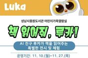 [비건뉴스=최지영 수습기자] 성남도시개발공사 중원도서관은 지역 어린이들에게 인공지능(AI) 기술을 활용한 새로운 독서 체험 기회를 제공하기 위해 ‘책 친구 로봇, 루카(LUKA)’를 오는 12월까지 운영한다고 21일 밝혔다. ‘루카’는 책 표지를 인식해 음성으로 내용을 읽어주는 인공지능 독서로봇으로, 유아와 어린이가 스스로 책을 읽고 들으며 독서의 즐거움을 느낄 수 있도록 돕는 AI 독서학습 보조기기다. 이번 사업은 루카를 활용한 전시와 기관 협력 프로그램을 통해 어린이들에게 친숙하고 흥미로운 독서 경험을 제공하고자 마련됐다. 먼저 중원도서관에서는 한 달간 ‘책 읽어줘! 루카’ 전시가 진행된다. 어린이·가족열람실에 루카와 전집을 함께 비치해, 어린이들이 직접 로봇을 체험하며 자연스럽게 책 읽는 즐거움과 호기심을 느낄 수 있도록 운영된다. 시민 누구나 자유롭게 참여 가능하며, AI 기술과 독서가 결합된 혁신적인 독서문화를 체험할 수 있는 특별한 기회를 제공한다. 또한, 도서관 밖에서도 아이들이 책과 만날 수 있도록 ‘책 나들이 ON 루카’ 협력 프로그램을 진행한다.