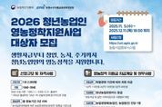 [비건뉴스=최지영 수습기자] 영광군은 지역 농업의 미래를 이끌어 갈 청년 인력을 육성하기 위해 ‘2026년 청년농업인 영농정착 지원사업’ 1차 대상자를 오는 12월 11일까지 모집한다고 밝혔다. 신청 자격은 만 18세 이상~40세 미만의 청년 가운데 독립경영 3년 이하(또는 독립경영 예정자)인 농업인이며, 처음 농업에 도전하는 예비 청년농업인도 신청할 수 있다. 또한, 신청 세대의 소득·재산이 기준 중위소득 140% 이하일 경우에 한해 지원 자격이 부여된다. 선정된 청년농업인에게는 영농경력에 따라 월 90만~110만 원의 영농정착지원금이 최대 3년간 ‘청년농업 희망카드’로 지급되며, 영농 초기 생계비와 필수 경영비 등 정착 기반 마련에 활용할 수 있다. 또한, 최대 5억 원 한도의 후계농 육성자금(연 1.5%)도 함께 지원된다. 사업 신청은 농림사업정보시스템(Agrix)을 통해 온라인으로만 접수할 수 있으며, 신청서 제출 후 서류 평가와 면접 평가를 거쳐 2026년 1월 중 최종 대상자가 확정된다. 관련 지침과 세부 내용은 군 홈페이지 공고문에서 확인할 수 있다. 군 관계자는 “이번 사업이 청년들이